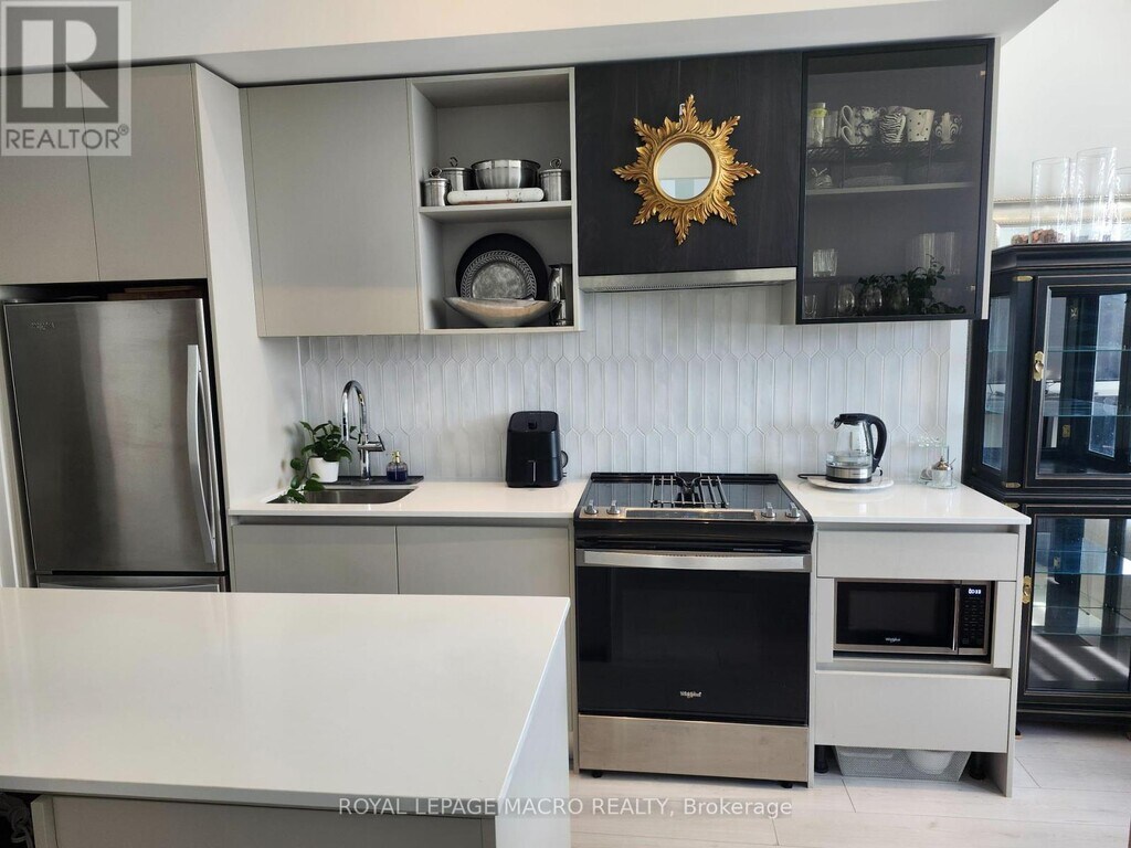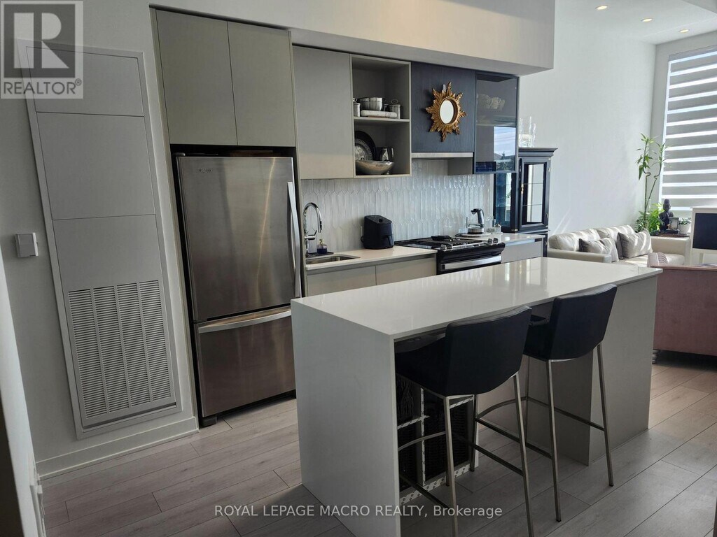 Bight and modern 2-bed,2-bath unit in North Oakville's sought-after Distrikt Trailside. Features 10 ceilings,large windows with blinds,upgraded kitchen with quartz countertops and extended island. All appliances included. Enjoy a spacious private terrace,open-concept living,and quality finishes throughout. Includes 1 underground parking spot and 1 locker. Building amenities: 24-hr concierge,fitness centre,rooftop terrace with BBQs,party room,games room. Prime location near grocery stores,Starbucks,schools,hospital,scenic trails,and quick access to Hwy 403,407,and QEW. (id:52069) ID#: 2181389