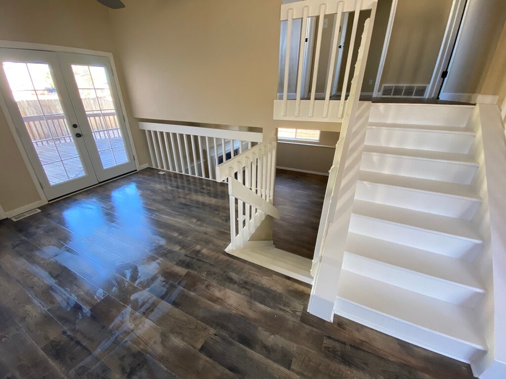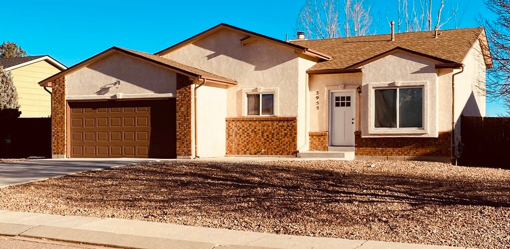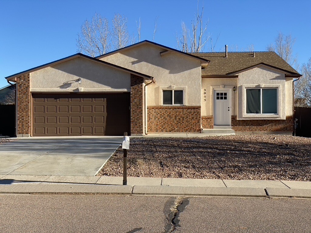 This 3-bedroom, 2-bathroom home is nestled next to Fort Carson in Cheyenne Meadows. The home offers 1,400 square feet of living space. The main-level living room features vaulted ceilings and a kitchen/dining area, providing an open and airy atmosphere. Each bedroom features large closets for ample storage. The upstairs bathroom is equipped with a tub/shower combination. Additional amenities include internet/cable readiness and an in-unit washer/dryer for convenience. The property also features ceiling fans and heating for year-round comfort. There is a sizeable attached two-car garage and a shed for additional storage. The exterior includes a spacious backyard space, suitable for outdoor activities.