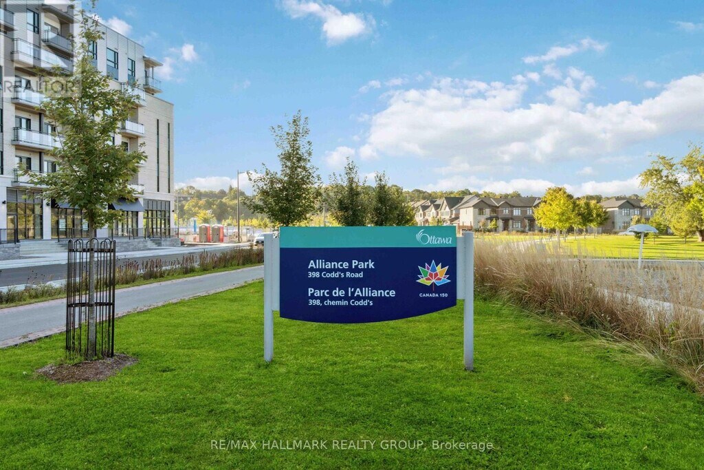 Welcome to this bright and modern one-bedroom plus den condo overlooking Alliance Park,designed with style and functionality in mind. Just one year old,this thoughtfully finished unit features an open-concept layout with smooth ceilings,warm-toned luxury vinyl plank flooring,and large west-facing windows that fill the space with natural light. The sleek kitchen showcases white quartz countertops,upgraded stainless steel appliances,and crisp white cabinetry,while the den offers versatile space for a home office or guest room. The spacious bedroom includes a walk-in closet,and the private balcony provides the perfect spot to relax and enjoy the view. Additional highlights include in-unit front-loading laundry,underground parking,and a rare storage locker. Conveniently located minutes from downtown,Montfort Hospital,CMHC,College La Cité,and the Blair LRT station,this condo offers the perfect balance of comfort,style,and accessibility. With only hydro and water to pay and no rental equipment,this home is a move-in-ready opportunity available December 1,2025. (id:52069) ID#: 1890811
