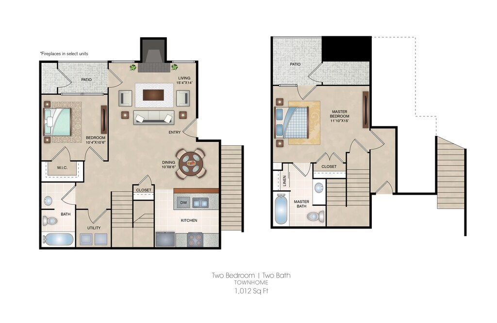 Apartment Model: 2:2 TownhomeFrom $1,2802 Bedroom, 2 Bath, 1012 sq ftAvailable Now![]()