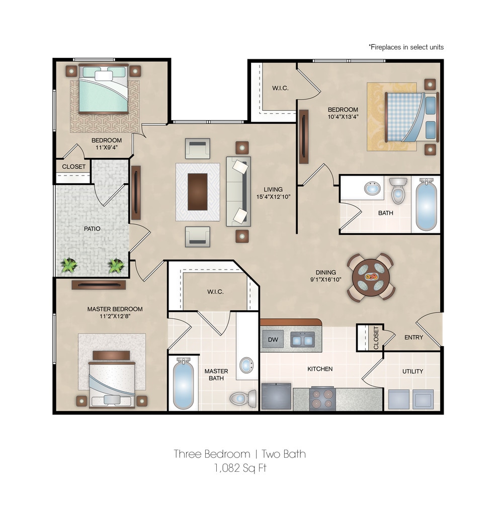 3 Beds, 2 Baths, 1082 sq ftAvailable NowModel Gallery