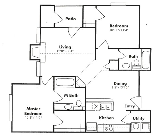 1:1 712sqft - Floorplan 2 2 Bedrooms