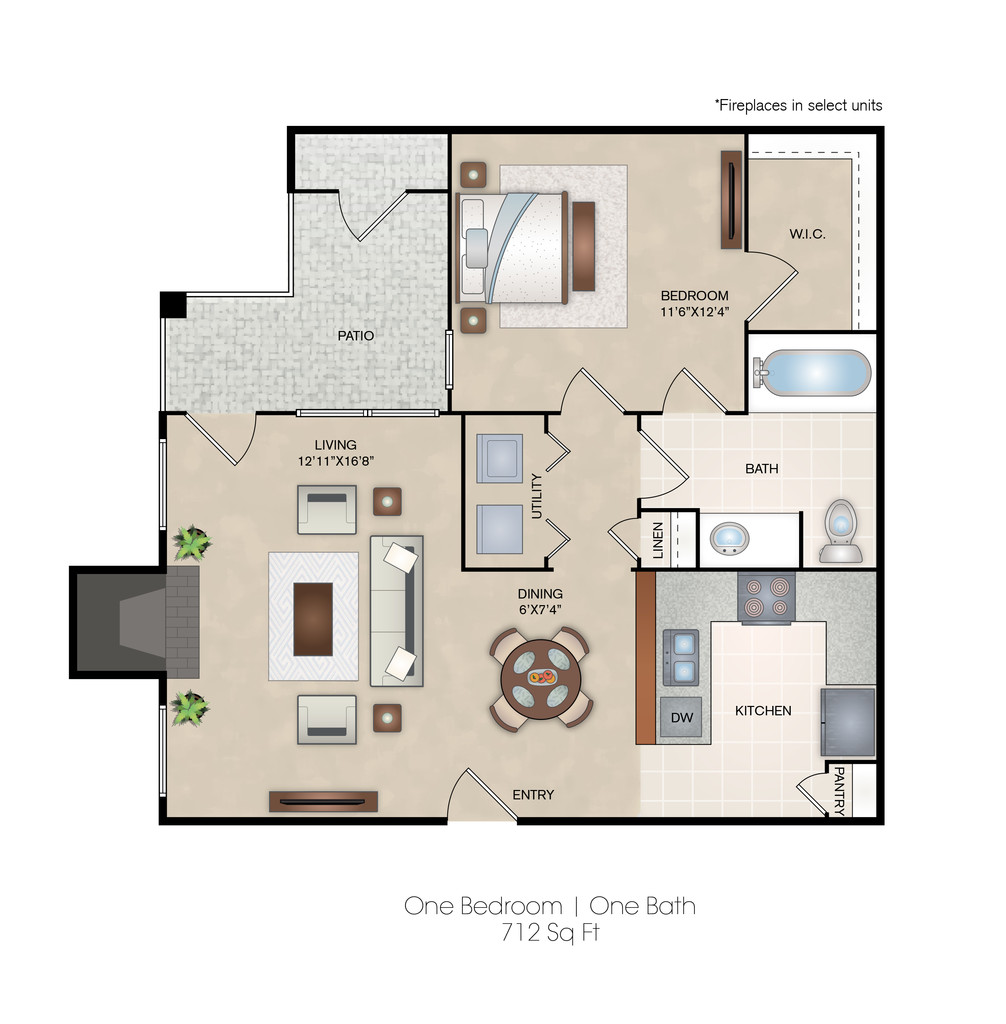 1 Bed, 1 Bath, 712 sq ftAvailable NowModel Gallery