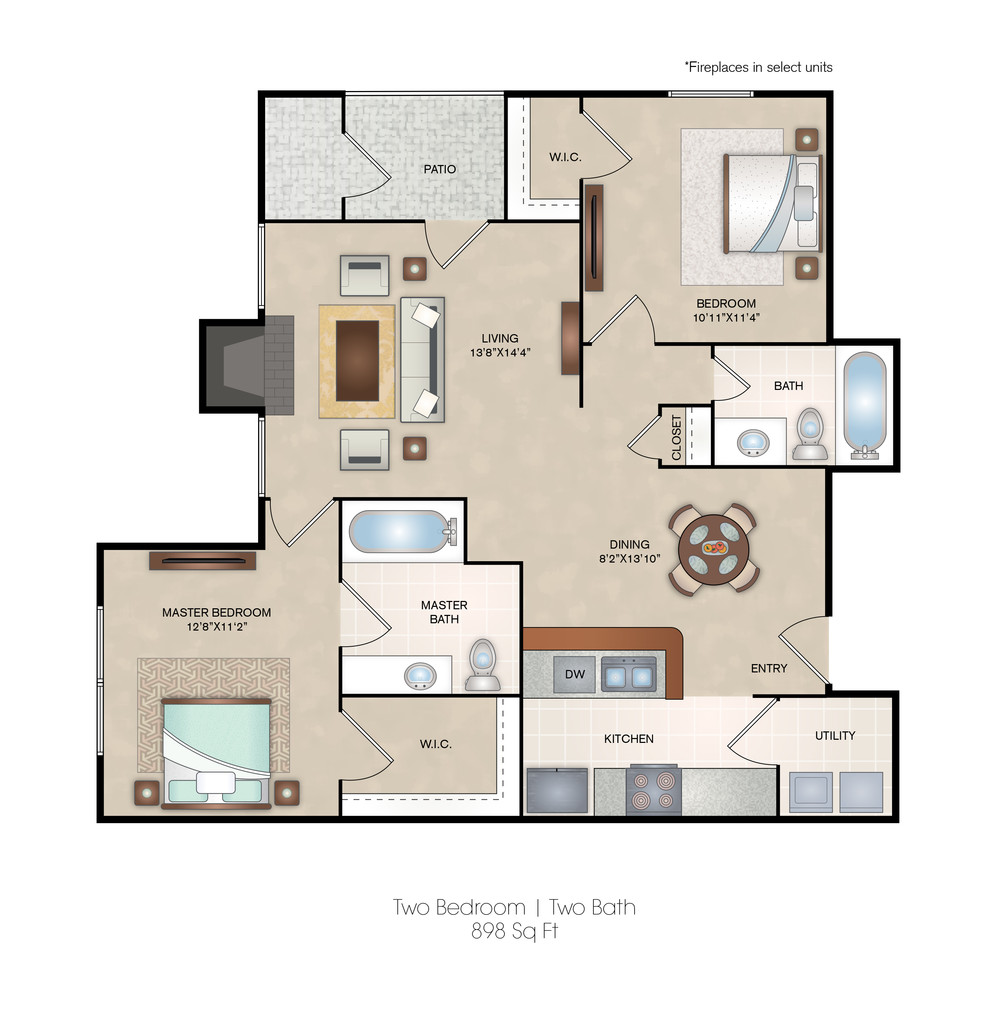 2 Beds, 2 Baths, 898 sq ftAvailable NowModel Gallery