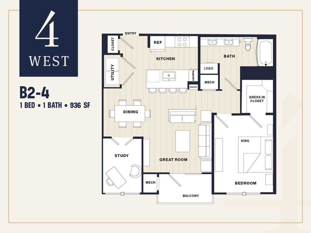 1 Bed, 1 Bath, 936 sq ftModel Gallery