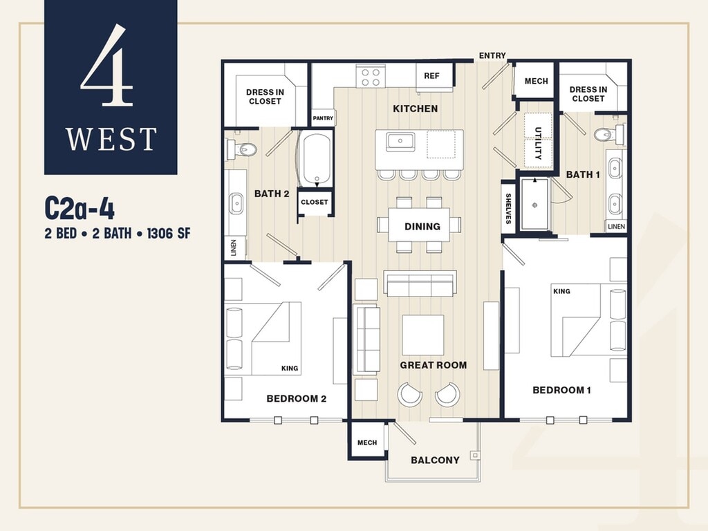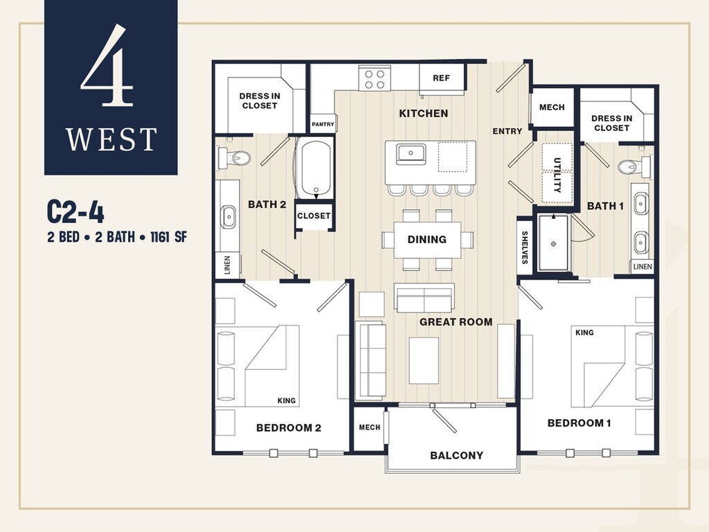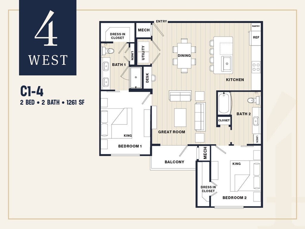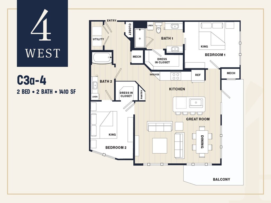 4 West offers Studio to 2 Bedroom apartments starting from $1,890 and having 545–1,410 sq ft. Here is the current pricing and availability: