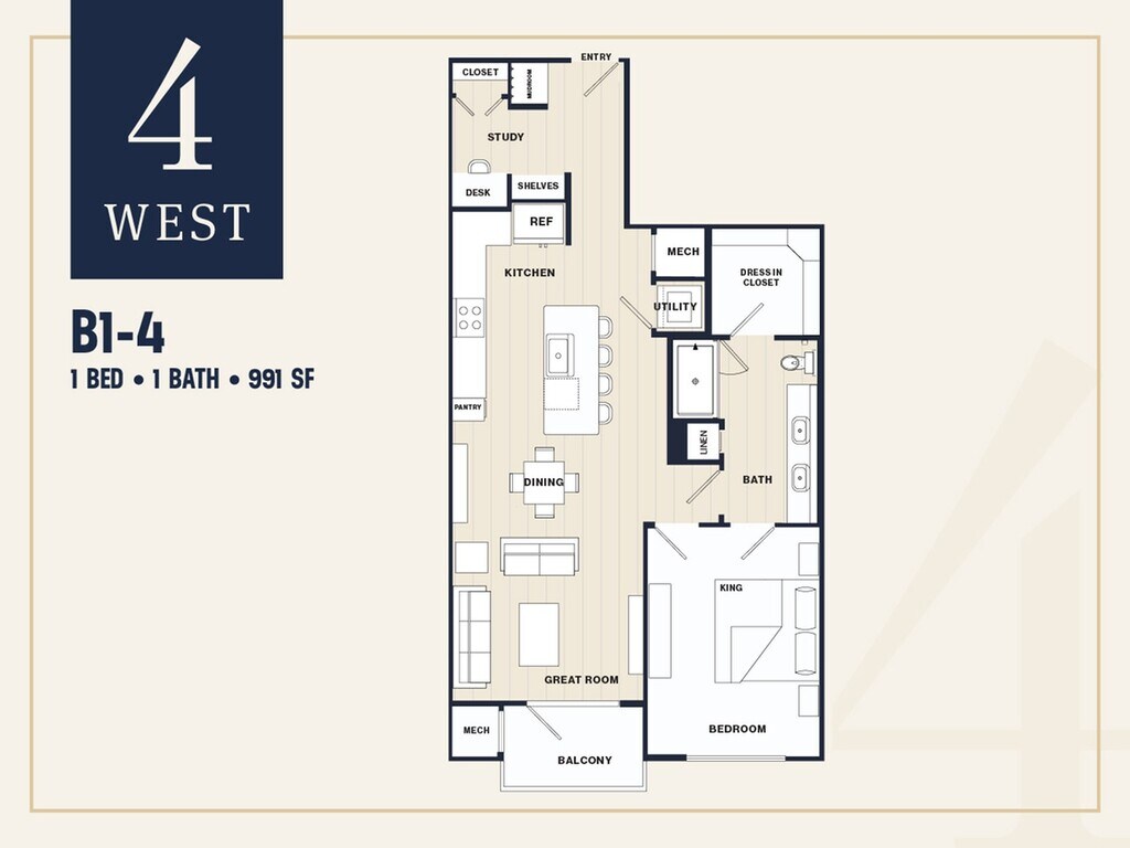 B1H - Floorplan 1 Apartment Unit: 4-4211Apartment Model: B1H$2,0751 Bedroom, 1 Bath, 991 sq ftAvailable November 22, 2025Floorplan A3
