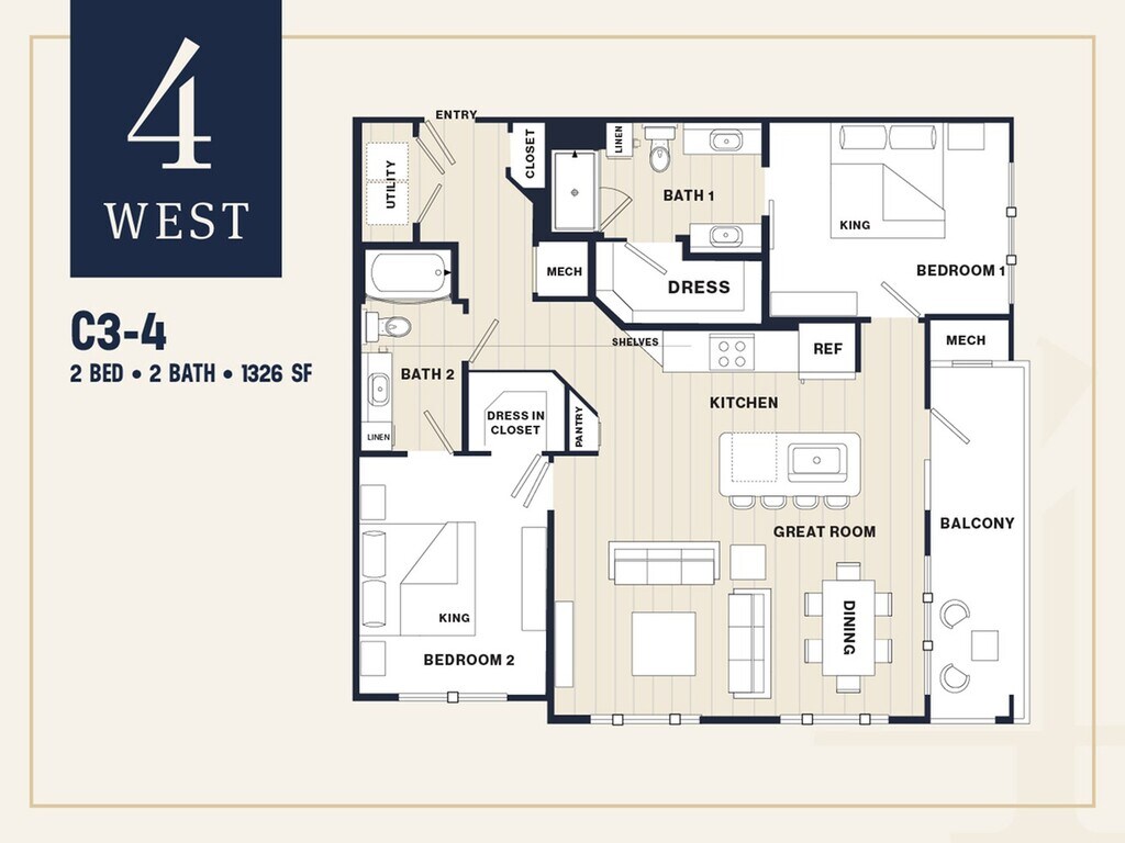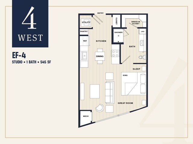 Studio to 2 Bedroom Apartments at 4 West currently range from $1,890 to $2,550