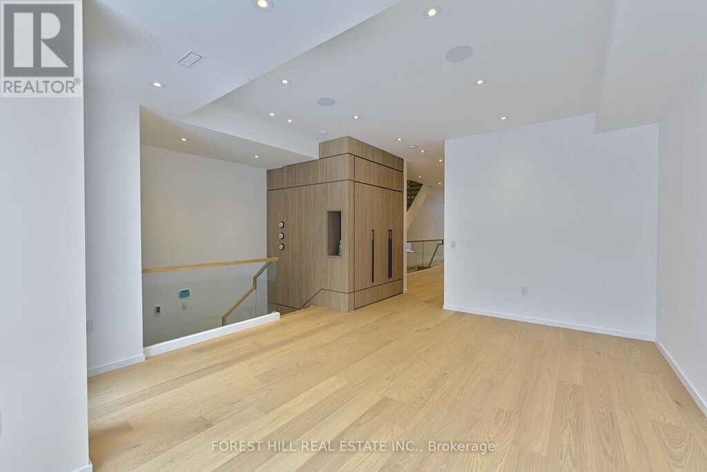 Experience refined luxury living in this stunning modern home on an exceptionally rare 27.5-foot lot. Boasting four bedrooms-each with a private ensuite-this residence blends modern living with everyday comfort. A heated foyer welcomes you into a living and dining area highlighted by wide-plank hardwood flooring and floor to ceiling windows. The house is operated by Control 4 smart home system and covered by security cameras.The gourmet kitchen showcases Miele built-in appliances including cooktop,oven,microwave,and integrated refrigerator with freezer,all complemented by soft-close cabinetry with Blum hardware and a striking waterfall island with a breakfast nook. The family room offers a 72" electric fireplace,built-in wall unit,surround-sound rough-in,and expansive patio doors opening onto a covered composite deck-perfect for year-round entertaining with BBQ rough-in and integrated speaker system.Retreat to the serene primary bedroom featuring a custom walk-in closet,integrated headboard with niche lighting,modern fireplace with TV rough-in,and a spa-inspired five-piece ensuite complete with heated floors and House of Rohl fixtures. Each additional bedroom includes its own ensuite and built-in closet.The fully finished basement is designed with radiant heating,a full custom kitchen with elegant AGT finishes,quartz surfaces,and a private bedroom suite-ideal for extended family or guests. With parking for up to five vehicles and exceptional craftsmanship throughout,this home defines contemporary elegance in every detail.Conveniently located in family friendly neighborhood,close to transit,grocery stores,variety of restaurants and easy access to the 401. (id:63800) ID#: 1990092