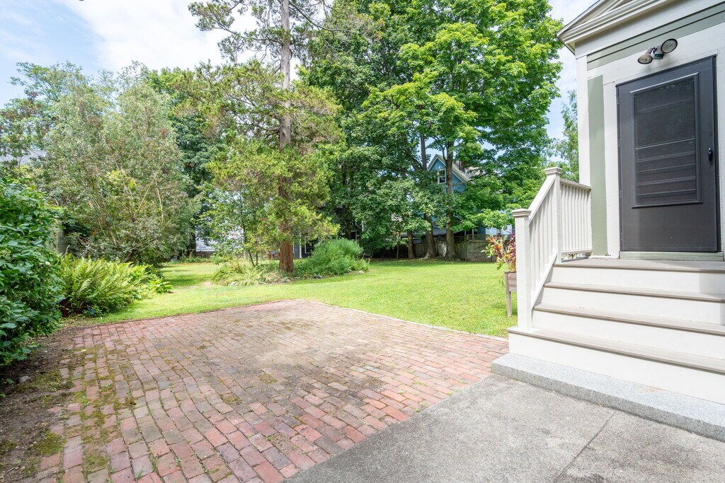 Classic late-19th-century townhouse on tree-lined Cushing Street with a rare 8,000 SF private backyard. Nearly 2,300 SF across 3 sunny levels. Main level features oversized living room, open kitchen/dining/family area with granite counters, cherry cabinetry, Viking gas range, and French doors to patio. Half bath included. Second level offers 2 large bedrooms, spa-style bath with soaking tub & glass shower, and laundry room with walk-in closet. Top floor has 1 bedroom plus large bonus room (ideal primary suite, studio, or office) and full bath. Finished lower level flex room + ample storage. Additional attic storage. Off-street parking. Close to Fresh Pond, Star Market, Haggerty School, tennis courts & 71/73 bus to Harvard Sq. Quiet, convenient location with townhouse living, an oversized fenced-in yard, and rare outdoor space perfect for entertaining, gardening, or play.