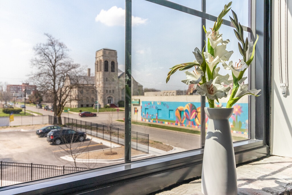 Originally the Packard Automobile Showroom designed by famed Detroit architect Albert Kahn, 40 Hague was transformed into modern, residential lofts that pay homage to the building’s industrial roots. 40 Hague is a two-story building comprised of 38 apartments in a variety of floor plan layouts to suit your needs. There are 2 studios, 28 one-bedroom apartments, and 8 two-bedroom apartments. Each comes equipped with standard appliances, including a washer, dryer, and microwave, and has access to 40 Hague’s shared interior courtyard featuring seating, trees, and planters. Our residents also enjoy easy access to a private park featuring barbecues and green space. Detroit’s first branded neighborhood, the North End is located just minutes away from the Wayne State University campus with convenient access to the John C. Lodge freeway. 40 Hague is situated along Woodward Avenue, and the neighborhood itself is conveniently located near some of Detroit’s best cultural, educational, and medical institutions in the region—including the Detroit Institute of Arts, the Fisher Theater, the Michigan Science Center, Henry Ford Hospital, and the Detroit Medical Center. It’s also just a short way from downtown Detroit proper, where you can catch a game at Comerica Park or Little Caesar’s Arena, a concert at the Fox or the Fillmore theaters, or enjoy a bite to eat and a craft cocktail at any number of the new bars and restaurants opening across Detroit. Charming retail, shopping, spas, coffee shops, bakeries, and more dot the streets, waiting to welcome you from your new home in the city.