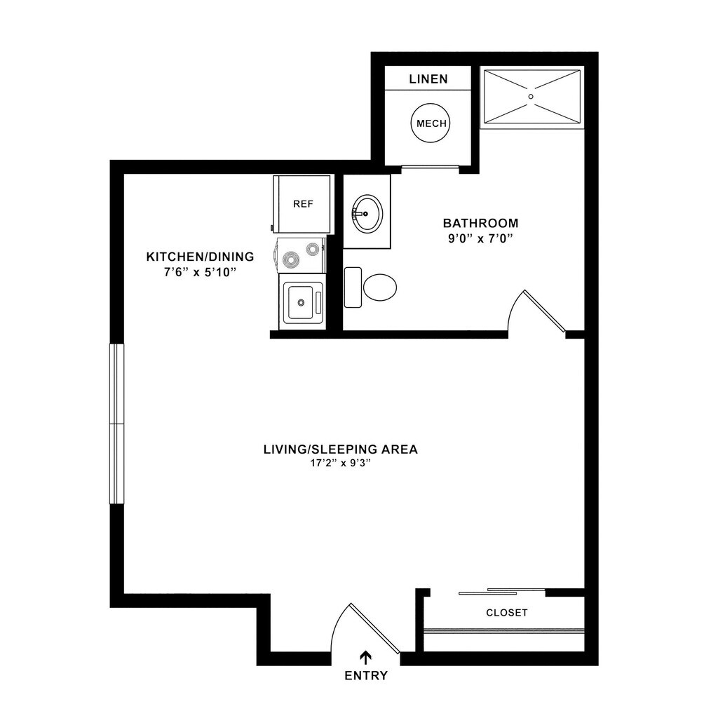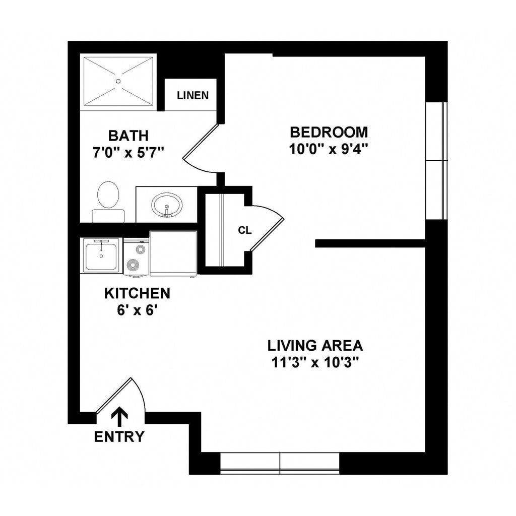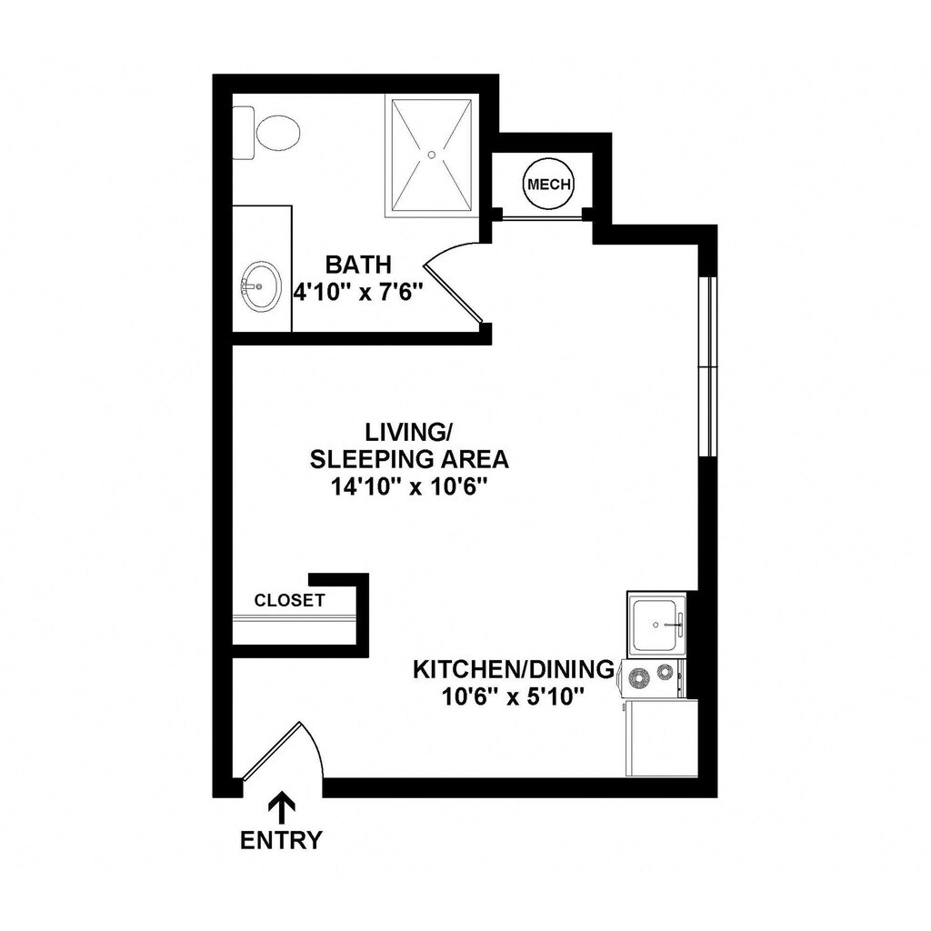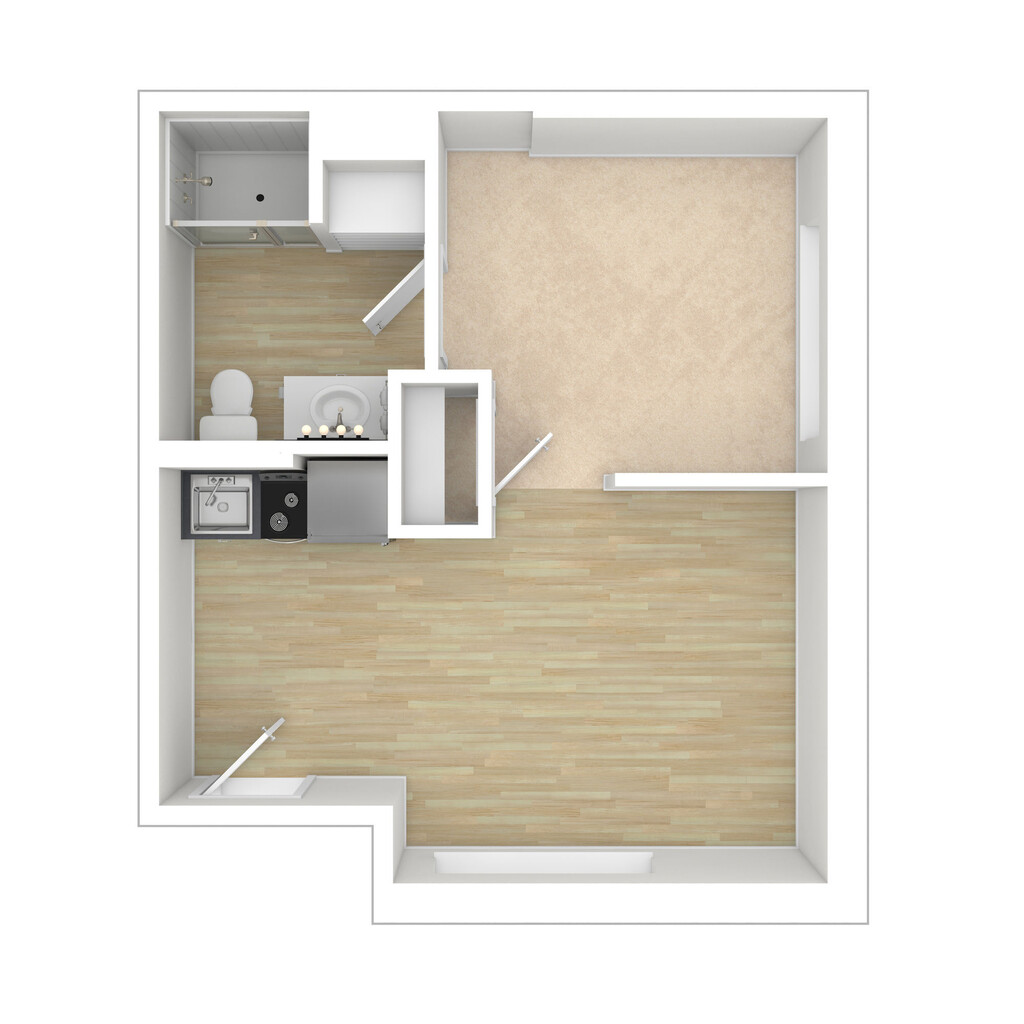 Apartment Model: StudioStudio, 1 Bath, 322-350 sq ftUnavailable![]()