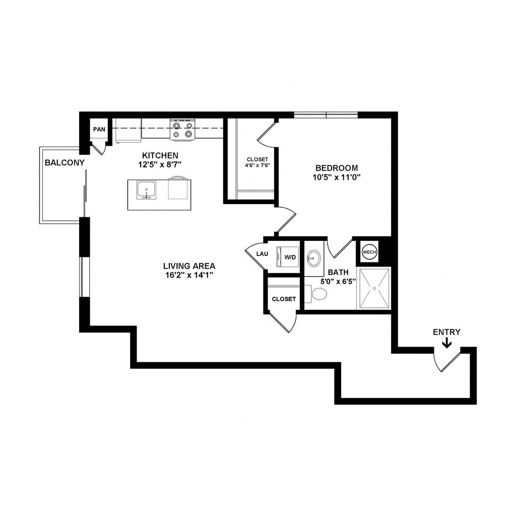 1 Bedroom - Floorplan 10 Penthouse- 1 Bed
