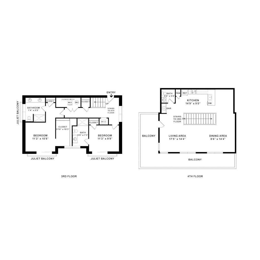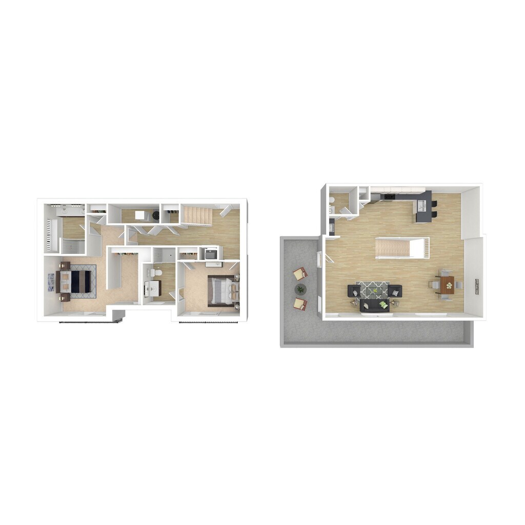 Apartment Model: Penthouse- 2 Bed2 Bedroom, 2.5 Bath, 1236-1346 sq ftUnavailable![]()