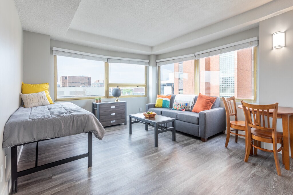 400 Maynard offers spacious studio, 1 & 2 bedroom apartments in downtown Ann Arbor — just one block from the University of Michigan Diag. Enjoy large open layouts, big windows with city views, and plenty of natural light. Walk to campus, restaurants, shops, and nightlife. Affordable rates meet luxury finishes in one of Ann Arbor’s best student housing and downtown apartment options. Schedule your tour today!