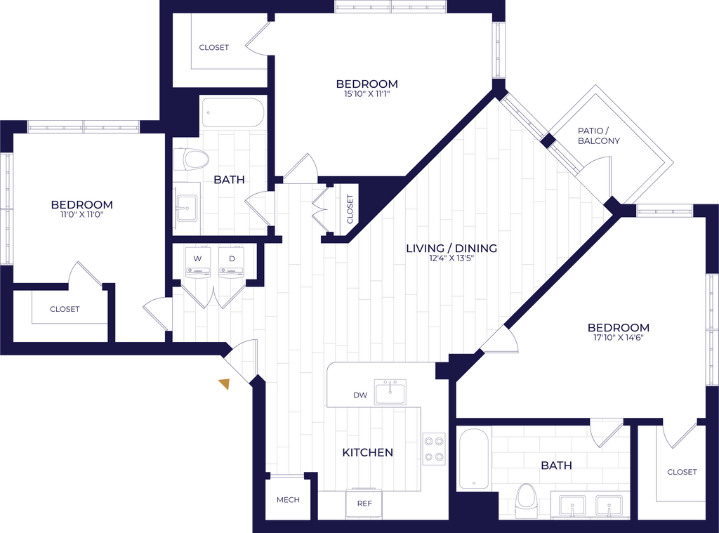 Apartment Model: 1 Bed/1 Bath WDU-A5From $1,5451 Bedroom, 1 Bath, 753 sq ftAvailable Now![]()