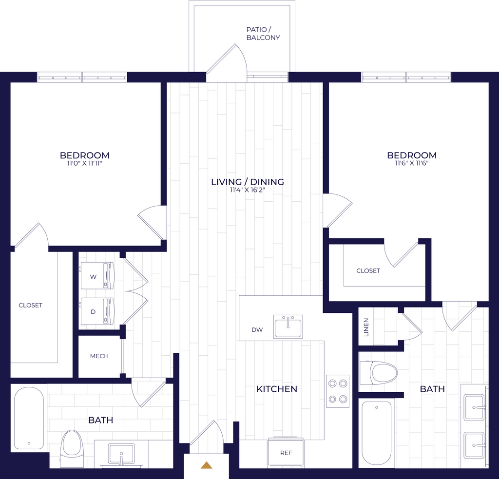 Apartment Model: 2 Bed/2 Bath-B7From $1,9602 Bedroom, 2 Bath, 1138 sq ftAvailable Now![]()