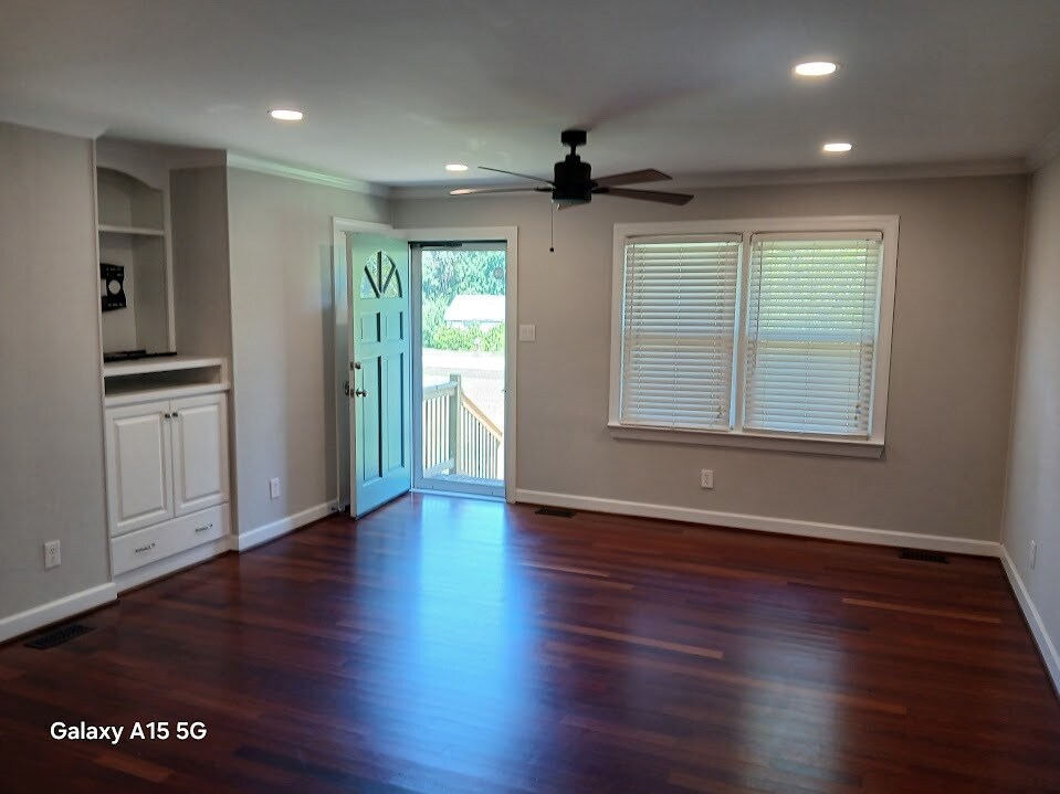 This property at 4008 Lebanon Rd features 3 bedrooms and 1 bathroom with a total of 1,079 square feet. The kitchen is equipped with stainless steel appliances, granite countertops, a center island, and a breakfast nook, providing ample space for cooking and dining. The living room offers a comfortable area for relaxation, while the bathroom includes double vanities and a tub/shower combination. Additional amenities include a washer and dryer, a built in entertainment area with high speed internet access, air conditioning, and ceiling fans. The exterior boasts a huge new deck surrounded by beautiful rose bushes, a large shop, and two additional storage buildings. The rental price includes all yard work.