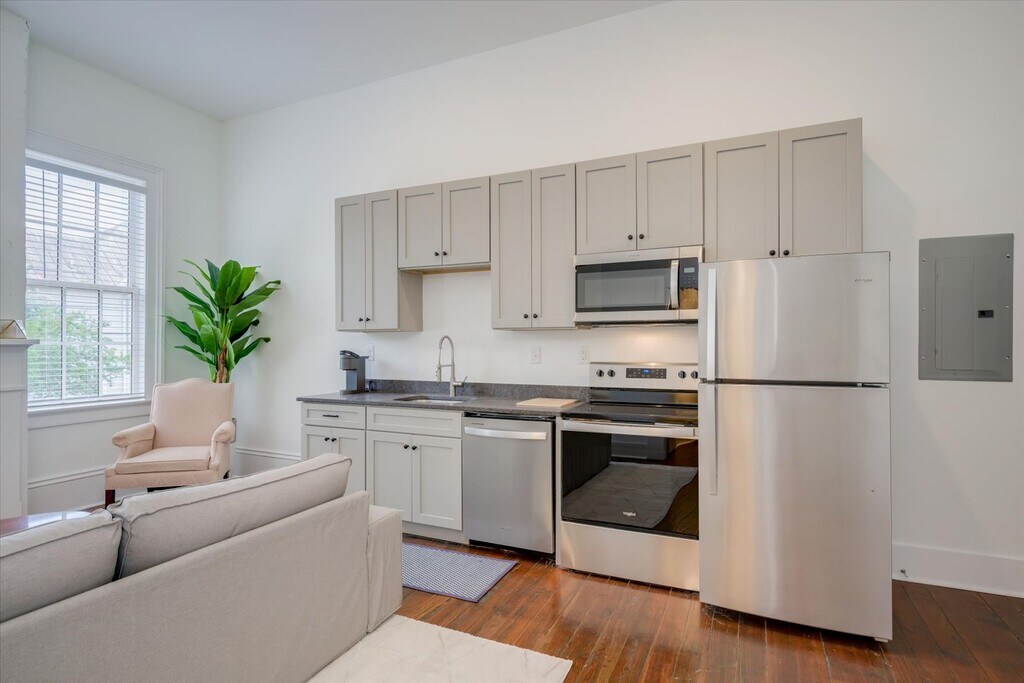 Welcome to downtown Augusta’s newest restored loft apartment community, Kahrs Lofts. Updated with modern luxury in mind while maintaining the historic integrity of the original Kahrs & Co. dry goods grocery building built in 1850, each loft has its own unique layout and charm, including original ornamental fireplaces with mantles, decorative cast iron structural beams, hardwood floors on second and third floors, historic arched walls, large window openings with new double-paned windows, updated bathrooms with showers, modern full-size kitchens with all appliances and in-unit clothing washers and dryers. Each unit also has use of one surface lot off-street parking space adjacent to the building. Utilities included in rent are: water, sewer, trash disposal (in parking lot), and community WiFi. Residents pay for electricity outside of rent, and may subscribe to private WiFi, if they choose.