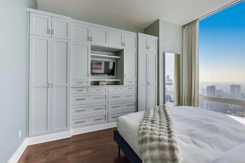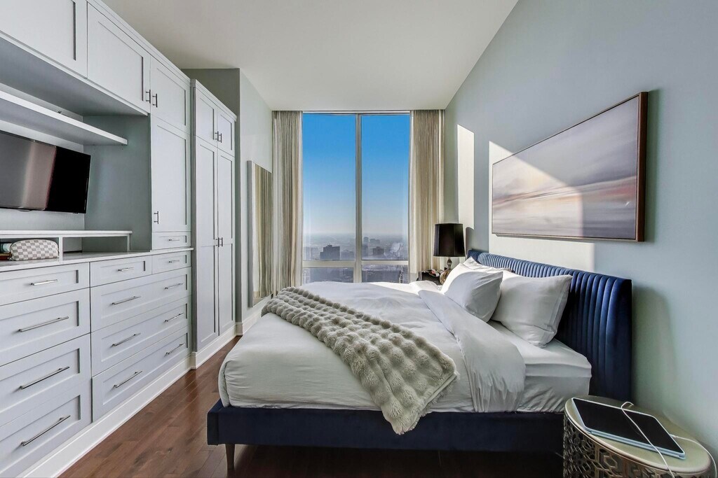 Available furnished! Experience unparalleled luxury in this move-in-ready 2-bedroom, 2.5-bathroom residence at Trump Tower Chicago, where breathtaking city views, sophisticated design, and world-class amenities combine for the ultimate in city living. Located on a high floor, the home features expansive 11-foot floor-to-ceiling windows that fill the space with natural light, complemented by automated window shades for ultimate comfort and privacy. The contemporary split layout offers privacy and ample space for entertaining, with rich hardwood floors, custom built-ins, and designer finishes throughout. The chef-inspired kitchen boasts top-tier SubZero, Wolf, and Miele appliances, while the luxurious primary suite includes a walk-in closet, custom storage, and a spa-like bathroom. Enjoy exceptional amenities such as a state-of-the-art fitness center, indoor pool, fine dining, and 24-hour concierge services, along with a premium parking space, all in the heart of River North, just steps from the Magnificent Mile and lakefront paths.
