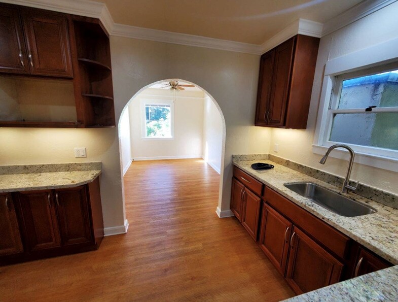 Completely remodeled 2 years ago. New cabinets, granite countertops, new flooring, etc. Space contains living room, two bedrooms with closets, and an "L"-shaped kitchen with dining area. Located on the second floor of a quiet, well-kept building. Best for 1-2 people. Owner pays water and garbage. Sorry - no pets and no smoking