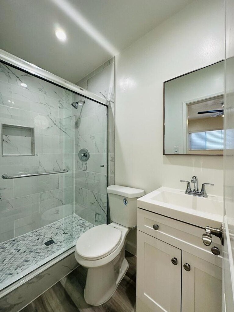 Beautifully remodeled 2 bedroom / 2 bathroom apartment offering approx. 916 sq ft of comfortable living space in a well-maintained gated community near Baldwin Hills. — Spacious layout with wood-style flooring throughout — Remodeled kitchen with stainless steel appliances including gas range, microwave, refrigerator, dishwasher, and garbage disposal — Stone countertops and ample cabinet space — Two full bathrooms with updated finishes — Recessed lighting and ceiling fans — White vinyl windows providing great natural light — One assigned parking space included — Gated entry building — Laundry facilities with mobile pay technology — On-site resident manager — Online rent payment and maintenance portal — Pet friendly (restrictions may apply) — Owner pays water, sewer, and trash Ideally located across the street from the park and conveniently situated near Baldwin Hills, Culver City, and Mid-City, with easy access to Kaiser Permanente Baldwin Hills Crenshaw Medical Offices, USC, UCLA, and Venice Beach. Great combination of space, upgrades, and location.