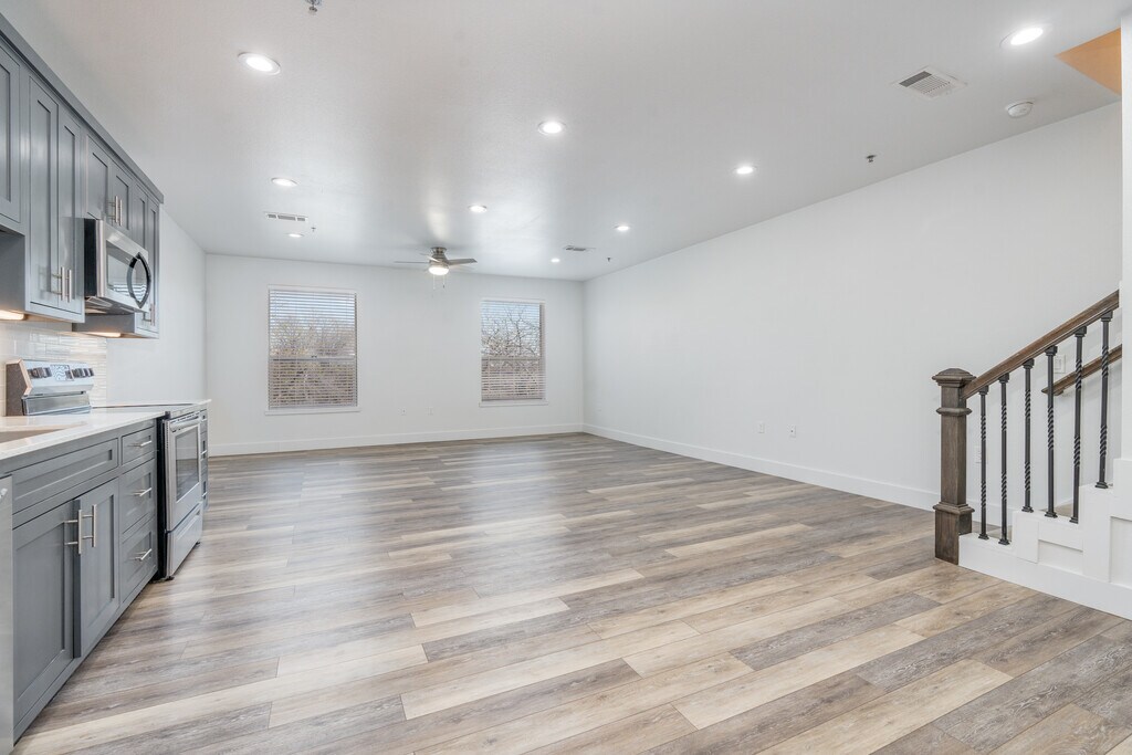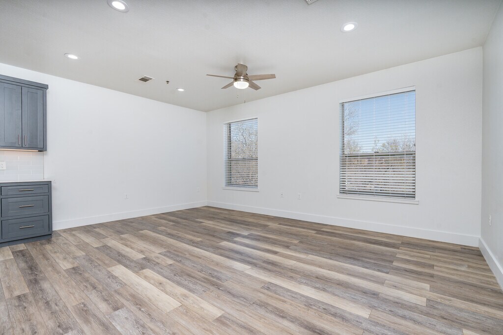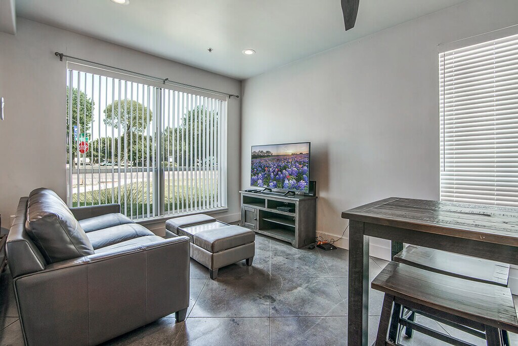 404 Industrial Park is Denton’s newest high-end apartment complex. Established in 2018, we are located off Industrial St. and conveniently tucked right in the middle of the can’t-miss action of Denton, TX. Only at our campus will you experience a unique, gated community with the perfect fusion of luxury living spaces and amenities encased in a beautiful park setting unlike anything available at other apartment complexes. Our small, tranquil complex features more than 20 mature trees, an eight-foot cedar fence, open lawns, and lush landscaping with earth-toned pavers. Once inside our units, you’ll be blown away by standard amenities like quartz countertops, Venetian plaster ceilings, oversized closets, and walk-in showers. Seven different floor plans to choose from 24-Hour Maintenance and gated resident access Night patrol Water, trash, cable, and wireless internet included in the rent Furnished units available Central air conditioning Full-sized washer and dryer with every unit Stainless Steel Appliances Walk-in showers Bicycle storage Patio balcony* Stunning views Under-cabinet and recessed lighting Oversized closets