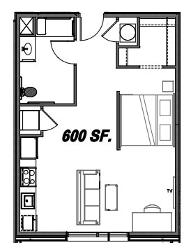 1 Bed, 1 Bath, 600 sq ftAvailable NowModel Gallery