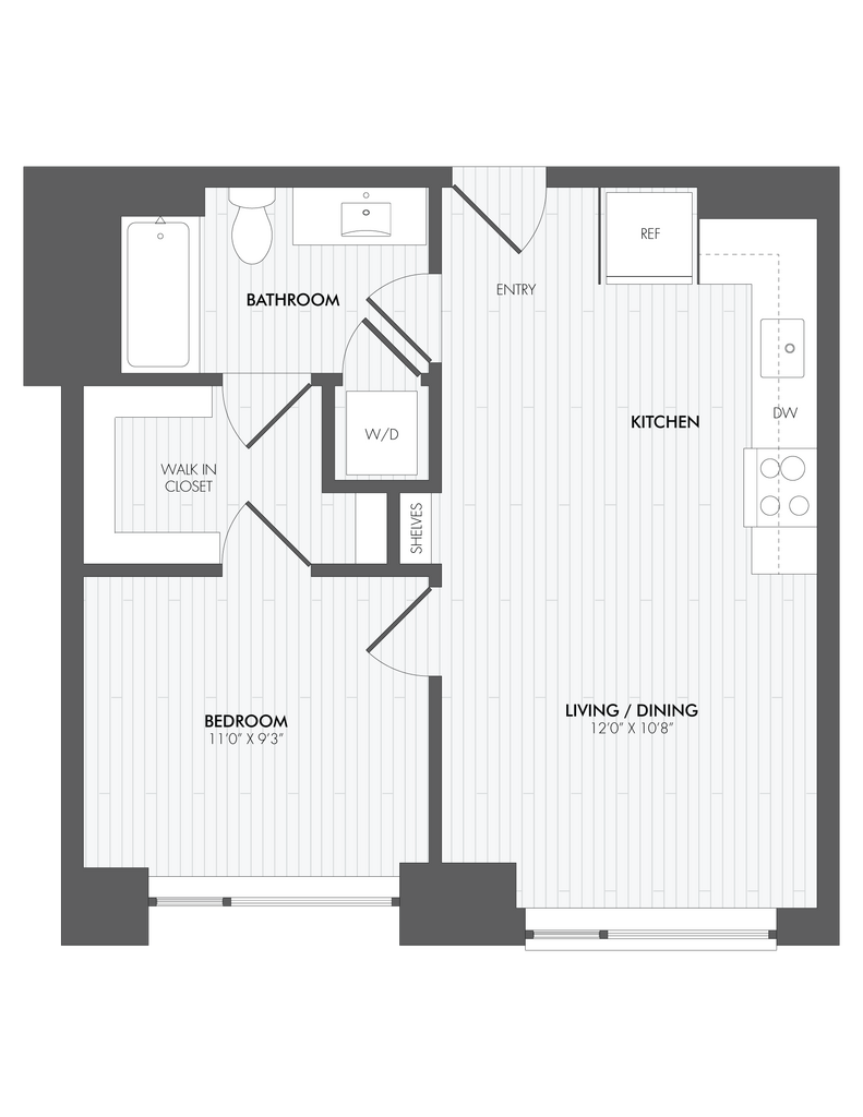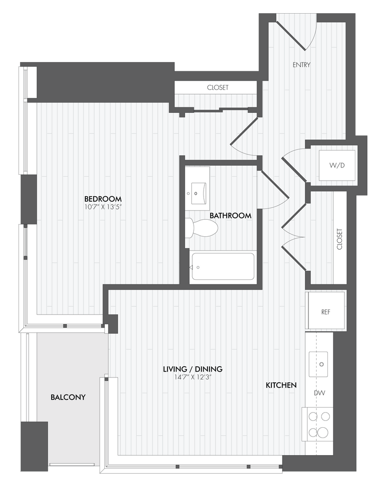 1 Bed, 1 Bath, 574 sq ftAvailable NowModel Gallery