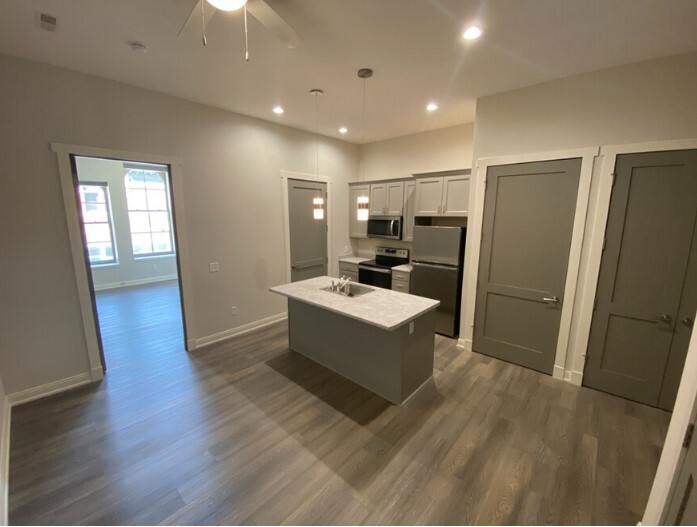 Recently renovated modern apartments located in downtown Janesville. All five units are one bedroom, one bathroom units and offer varying layouts. The apartments feature stainless steel appliances, washer/dryer in-unit, tall ceilings, eight foot solid doors. Unit #201 offers a skylight and beautiful exposed brick in bedroom. Unit #202 offers a large patio off the bedroom and units #203-205 offer large arched windows that allows plenty of natural light. All units feature glass shower enclosures. Private off-street parking provided. Pets allowed with certain restrictions and pet deposit.