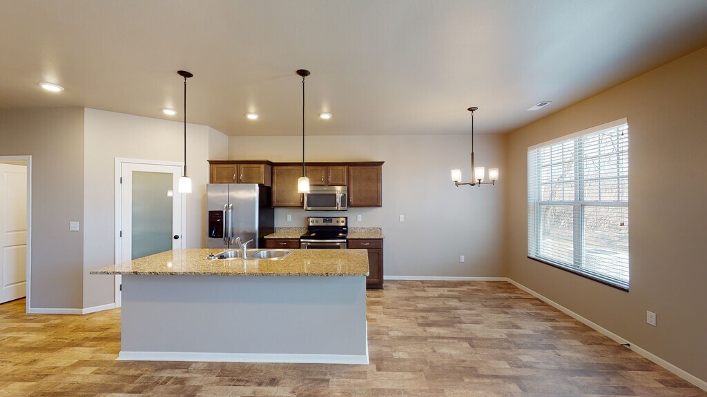 Designed for the way you live! Welcome to Diamond Creek Townhomes. This two-story townhome featured an open floor plan with a gas fireplace, kitchen island, pantry and half bath on the main floor. Upstairs you will find three bedrooms along with a laundry room. Enjoy a private patio off your dining room and the convenience of an attached garage.
