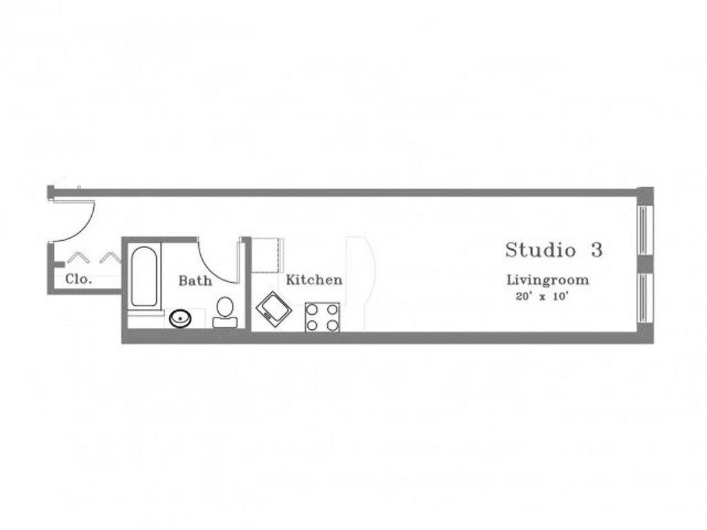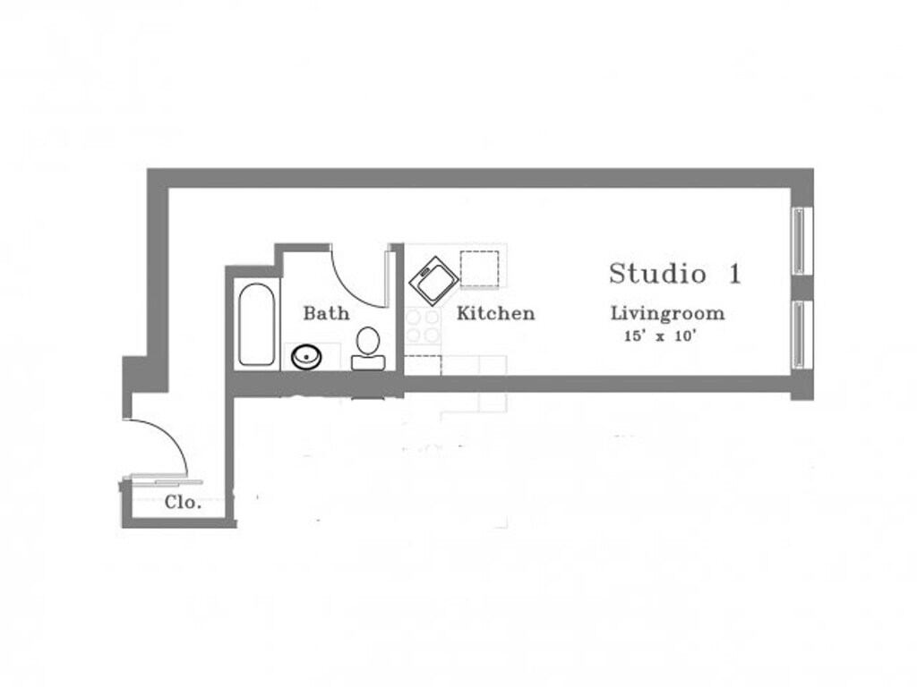 0X1 (1E, 2E, 3F) - Floorplan Apartment Unit: 1EApartment Model: 0X1 (1E, 2E, 3F)$1,885Studio, 1 Bath, 360 sq ftAvailable June 16, 2026![]()