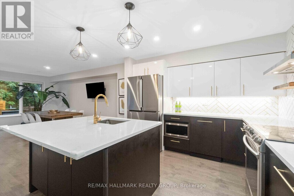 Welcome to 41 Kimberwick Drive! This beautifully renovated 3-bedroom townhome in the desirable Quinterra neighborhood combines modern finishes with fantastic outdoor living. The ground floor was completely redesigned in 2017,showcasing an open-concept layout with a gourmet kitchen,oversized island with storage on both sides,quartz countertops,herringbone subway tile backsplash,hardwood flooring,and pot lights. Appliances include refrigerator,stove,dishwasher,and hood fan. Other updates include marble flooring in the foyer and powder room,Nest learning thermostat,modern light fixtures,and dual-flush toilets (2020).Upstairs youll find three generous bedrooms,convenient second-floor laundry,and a stylish bathrooms. The finished lower level offers a spacious family room and ample storage.The true highlight is the expansive backyard deck,designed for entertaining with built-in bench seating and privacy screens perfect for gatherings or quiet evenings outdoors.Located directly across from Riverwood Park and steps to walking trails along the Rideau River,with easy access to downtown,shopping,and the airport,this home offers both lifestyle and convenience. (id:52069) ID#: 1588948