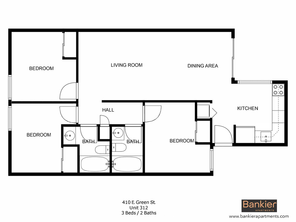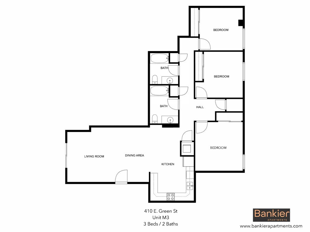 Studio to 3 Bedroom Apartments at 410 E. Green St by Bankier Apartments currently range from $875 to $1,700