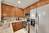 Spacious 3BR/2.5BA Townhome with 2-Car Garage in Pompano Beach. Well-maintained townhome featuring open layout, ceramic tile floors, and modern kitchen with granite countertops and stainless steel appliances. Half bath on main floor for guests. Private fenced courtyard with brand-new wood deck, palm trees, and white rock--perfect for relaxing or entertaining. Upstairs offers 3 bedrooms with wood flooring (no carpet). Primary suite includes walk-in closet and updated bath with dual sinks and walk-in shower. Upstairs laundry for added convenience. Impact-rated, noise-reducing windows and doors throughout. Attached 2-car garage.