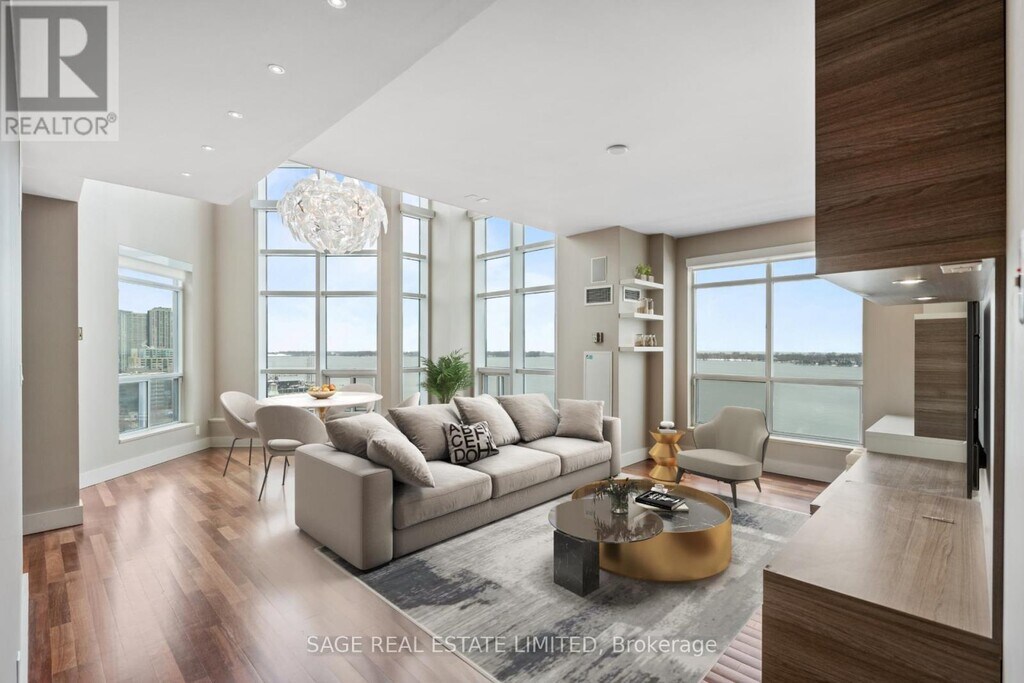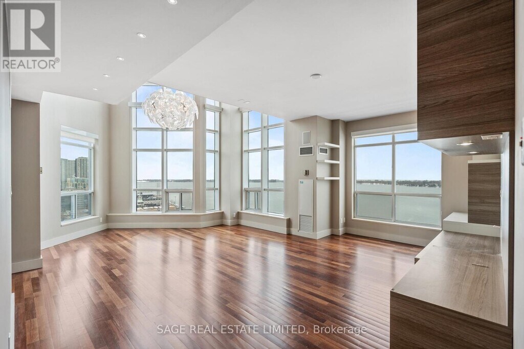 Dreams Do Come True. Step Into This Spectacular & Luxurious Waterfront 2-Storey Penthouse Unit Beautifully Updated And Maintained. "To The Studs" Custom Renovation. South-East View Of The Lake,Billy Bishop & Islands Will Take Your Breath Away. Automated Blinds,Built-In Surround Sound & Jatoba Hardwood Floors Throughout The Entire Unit. Chefs Kitchen Equipped With Sleek Designer Cabinetry,European Built-In Appliances Including Panelled Gaggenau Fridge/Freezer; AEG Steam Oven,Convection Oven,Induction Cooktop & Bosch Dishwasher. Stunning Primary Suite With Large Ensuite,Double Built-In Closets,Private Balcony & Soaring Views. Dine And Relax In The Open Concept Living/Dining Space W/ 17 Foot Ceilings & Unobstructed Views Of The Cn Tower & Lake! Newly Renovated Building Amenities; Guest Suites,Gym,Lobby,Party/Meeting Rooms,Rooftop,etc. Some photos virtually staged. (id:52069) ID#: 2039206