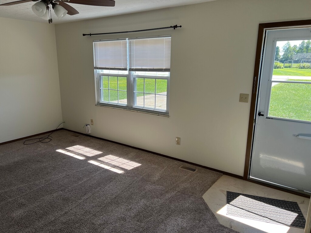 Keystone Schools - Beautiful 2 bedroom Ranch Duplex. This home is located very close to the Rt20 / I480 freeway. It has an Elyria address but it is located in the Keystone school district. It has 2 bedrooms & a full bath, along with all new carpeting. It features an eat in kitchen (note the new kitchen floor) with stove & refrigerator included. Off the kitchen a door leads to the utility room that contains the washer dryer hookup & a utility sink. The Utility room has a door leading to a large back yard where there is a small storage shed. This unit is located 6.4 miles from Oberlin College. There is a park and baseball field located directly across the street. We do not allow pets nor do we allow smoking inside the unit. We do not allow smoking or pets. This property is in the Keystone School district and is actually a duplex, but there is no '"Duplex" category for us to select on this Website. There is a washer / dryer hookup but we do not provide the washer or dryer.