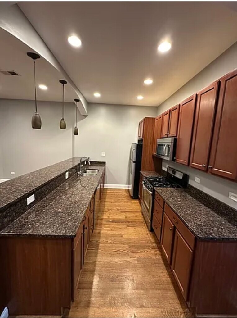 Available 10/1/2025 Spacious 2-Bed, 2-Bath Apartment with Condo-Quality Finishes! Enjoy the best of city living in this beautiful second-floor unit located in the heart of Bronzeville's vibrant Grand Boulevard neighborhood. Just minutes from the lakefront, downtown, Hyde Park, and major transit options! Features: 2 large bedrooms with walk-in closets 2 full bathrooms Condo-style finishes with hardwood floors throughout High vaulted ceilings Modern kitchen with granite countertops, cherry wood cabinets, and stainless steel appliances (fridge, stove, microwave, dishwasher) New in-unit washer and dryer Central heat and air New water heater Spacious private deck for outdoor relaxation ADT security system installed (service included in rent) Parking pad included in rear Location & Nearby Amenities: Walk to Mariano's, LA Fitness, and multiple CTA bus lines Green Line station nearby for easy access downtown and to Hyde Park Close to Lake Shore Drive, 31st Street Beach, and Oakwood Beach Near University of Chicago, Illinois Institute of Technology (IIT), Downtown Chicago, and Museum Campus Short drive to South Loop, Pilsen, McCormick Place, and Soldier Field Dining options nearby include Truth Italian, Pearl's Place, Ain't She Sweet Cafe, Two Fish Crab Shack, and many others Rent & Lease Info: Rent: $2,100/month Move-in fee: $600 non-refundable move-in fee required in lieu of security deposit. Minimum Lease Term: 12 months Application Requirements: Application fee may be required for background and credit check Minimum credit score: 600 No prior evictions or bankruptcies Employment verification required Policies: $600 non-refundable move-in fee No pets Non-smoking unit Renter's insurance required Tenant pays gas and electric Owner pays water, sewer, trash, lawn care, snow removal, and ADT monitoring