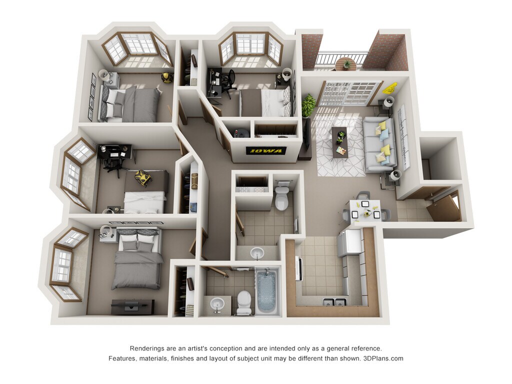 Iowa City 4 Bedroom Apartments | $2,110 | $695 | $3,200 |