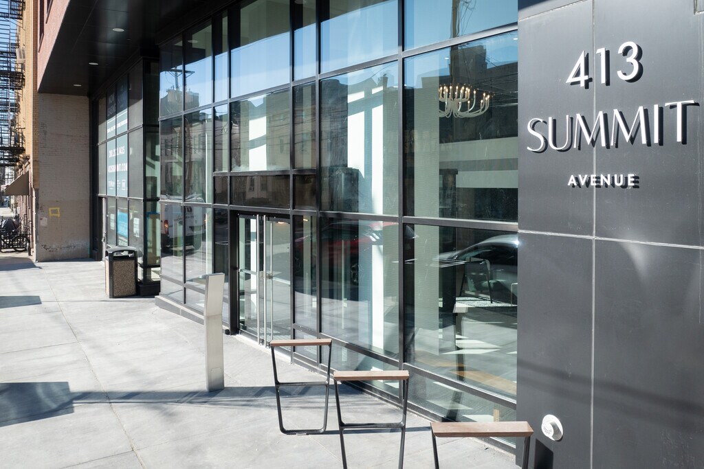 Welcome home to 413 Summit Ave! Situated in the energetic Journal Square neighborhood, 413 Summit Ave stands proud as a new benchmark in upscale residential living. Boasting 148 thoughtfully designed apartments spread over 19 floors, we offer an exceptional mix of studios, as well as one-, two- and three-bedroom units. Here at 413 Summit, each residence is a testament to chic design and luxurious amenities. From Whirlpool stainless steel appliances to LG washer/ dryers, your home is adorned with industry-leading brands. A collection of residences also features breathtaking views of the Manhattan skyline, providing a city living experience unlike any other. Take your lifestyle to new heights with our well-curated amenities. Whether it’s breaking a sweat at the gym, finding inner peace in the yoga room, or hosting a social event in our resident lounge or rooftop terrace, we’ve got you covered. With stunning views, grills, and a fireplace, the rooftop terrace is an idyllic urban escape. Our bike room, laundry room, and storage facilities offer everyday conveniences, while our on-site management office is always ready to assist you. 413 Summit Ave is located near beautiful Lincoln Park and close to outdoor activities such as golfing at Skyway Golf Course. Additionally, the Journal Square Path station is nearby, providing easy access to various transportation hubs throughout Jersey City, Hoboken and New York. The building is also just a short distance from two ferry stations that an take you to various points around Manhattan. This central location offers the perfect blend of convenience and access to all the neighborhood has to offer.