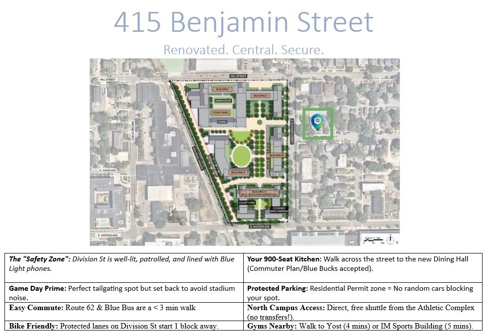415 Benjamin St is located in the Central Ann Arbor Neighborhood and 48104 Zip code of Ann Arbor, MI. This community is professionally managed by Oxford Companies
