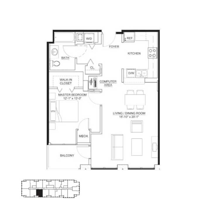 A10 - Floorplan 1 Apartment Unit: 0810Apartment Model: A10$1,9981 Bedroom, 1 Bath, 806 sq ftAvailable NowApartment Unit: 1610Apartment Model: A10$2,1901 Bedroom, 1 Bath, 806 sq ftAvailable NowApartment Unit: 1710Apartment Model: A10$2,1951 Bedroom, 1 Bath, 806 sq ftAvailable NowFloorplan A5