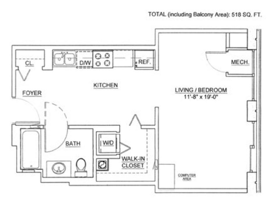 S1 - Floorplan 1 Apartment Unit: 0817Apartment Model: S1$1,713Studio, 1 Bath, 518 sq ftAvailable December 6, 2025Floorplan S2