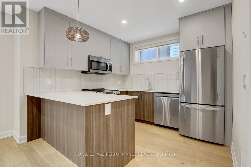 Newly built contemporary 1 bedrooms + den located in the heart of Westboro,over 800 sqft living space. Designed by award winning architect Rosaline J. Hill Architect Inc. High ceilings for a sunlit & spacious layout. Finishes are planned with both elegance and functionality in mind. Features engineered wide plank hardwood flooring & solid hardwood staircase. Kitchen is custom designed with a beautiful breakfast bar,quartz countertops,and stainless appliances. The primary bedroom retreat features a walk-in closet & a luxurious full bath. Convenient large den/office space. HRV,humidifier,central air,and radiant floor heat. Steps to transit/rail,parks,schools,shops,Westboro beach & more amenities,and located in one of the best school zones in Ottawa. The building is still under the construction. Tenant pays hydro and gas. A Must See! (id:52069) ID#: 1921576