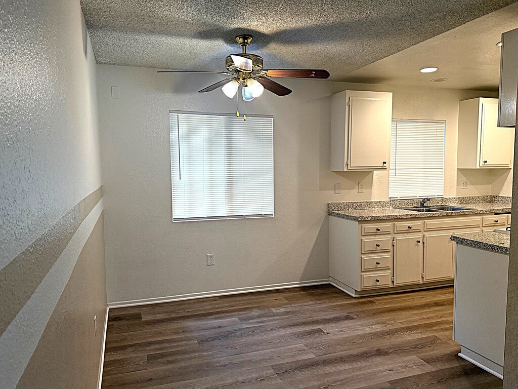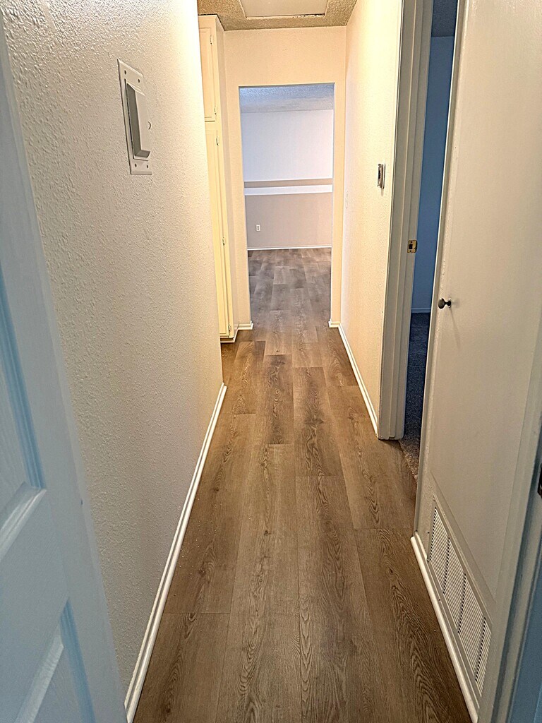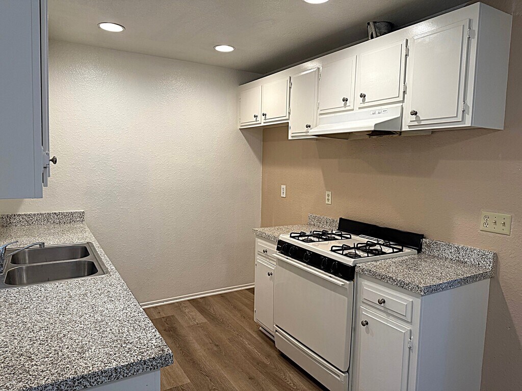 Upgraded condo is available for lease in the city of Orange. This corner unit (418) is located upstairs and features two bedrooms and two full bathrooms, with new upgrades throughout. The unit includes new waterproof laminate flooring, fresh paint, new carpet, and newer recessed lighting. The open-concept design highlights an oversized living room that seamlessly flows into the dining room and connects to a galley-style kitchen equipped with a four-burner gas stove and plenty of counter space. The living room also has a wall air conditioning unit to keep you cool during the summer months. Down the hallway, you will find a spacious quest bathroom with a shower/tub combo. Just outside the guest bathroom, there is a wall of storage cabinets and a hall closet for your convenience. Each of the two bedrooms includes deep closets with overhead storage. This condo provides a washer and dryer area for tenant use. This unit also features a one-car detached garage with a storage closet, as well as a shared driveway that is wide enough for all tenants to easily enter, exit, and park in their own private one-car garage. The detached garage door includes a man door for easy access. Water, trash, and gas are included in the occupancy fee. Don’t miss out on this must-see unit—schedule a visit before it’s gone!