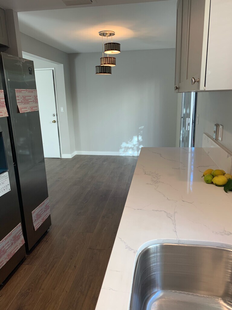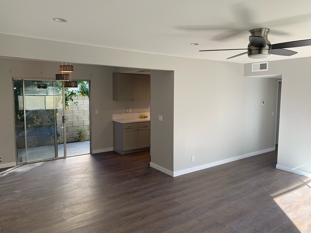 Immaculately and luxuriously remodeled large and airy 2 bedroom, 2 bath apartment ~1200 sq. ft. Small, quiet four-unit building in a very quiet neighborhood in the award-winning Arcadia school district. Pet allowed. No smoking. Fully remodeled kitchen with beautiful quartz countertops and modern cabinets. Stainless-steel Samsung and GE appliances: side-by-side refrigerator with icemaker and water dispenser, range/stove, microwave oven/hood, dishwasher. The large master bedroom has a large walk-in closet and a remodeled master bathroom with a beautiful double-sink vanity, and a glass-enclosed tile-lined shower with a modern mosaic floor. The second bedroom has a very nice large closet. The second bathroom is also new with a double-sink vanity, tasteful mirrors and a glass-enclosed, tile-lined bathtub/shower. The apartment enjoys central AC and heating installation. Own private patio and back yard. Cozy and quiet to call it your own relaxing oasis A large fruit-bearing lemon tree and other plants provide afternoon shade to the hot summer sun. Parking spots and extra storage area in the back. Showing by appointment only. Please text or message on the app to make an appointment. Please do not leave a voice mail message. Bedrooms: 2 Bathrooms: 2 (one with a full bathtub and one with a walk-in shower) Area: 1194 square feet Parking spaces: 2 off-street spaces Private patio / back yard Engineered hardwood flooring Stainless-steel appliances: Refrigerator, range/stove, microwave/hood, dishwasher Central A/C and heating