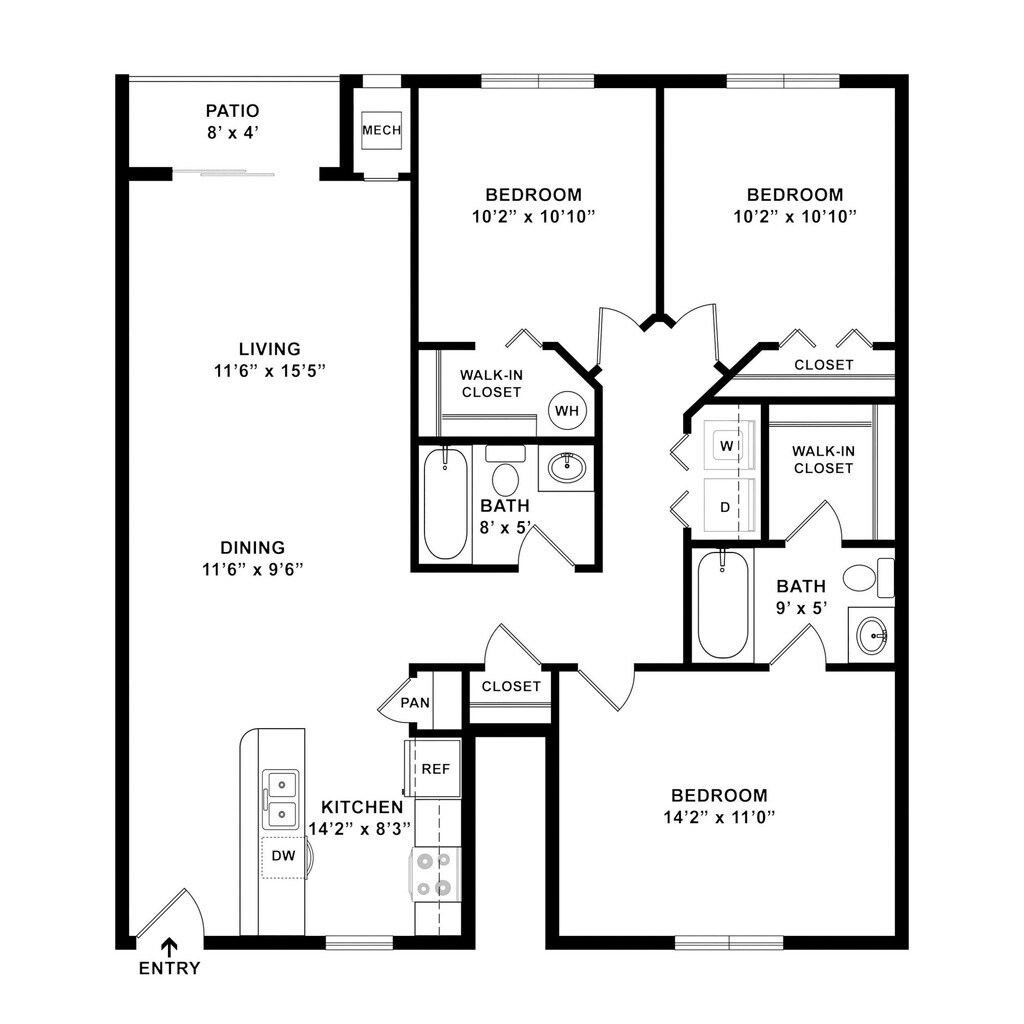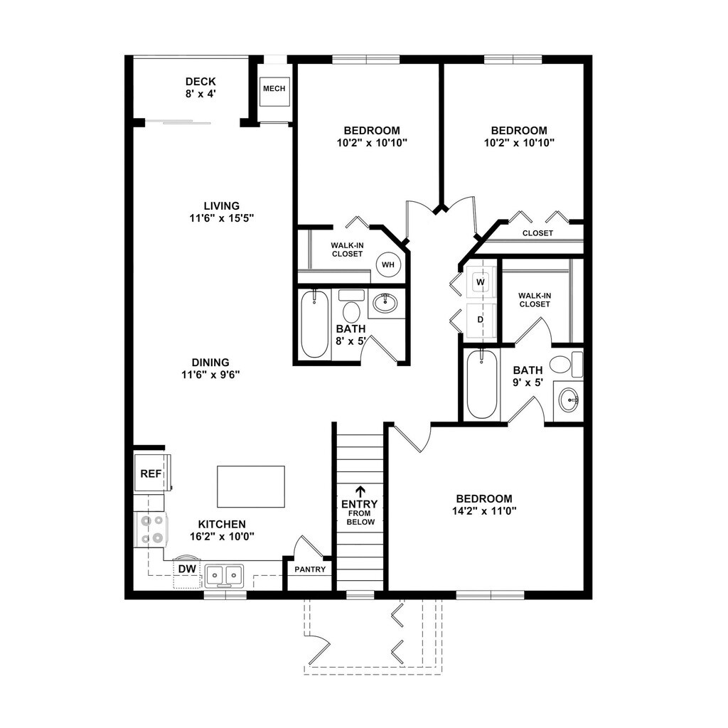 3 Beds, 2 Baths, 1228 sq ftAvailable NowModel Gallery