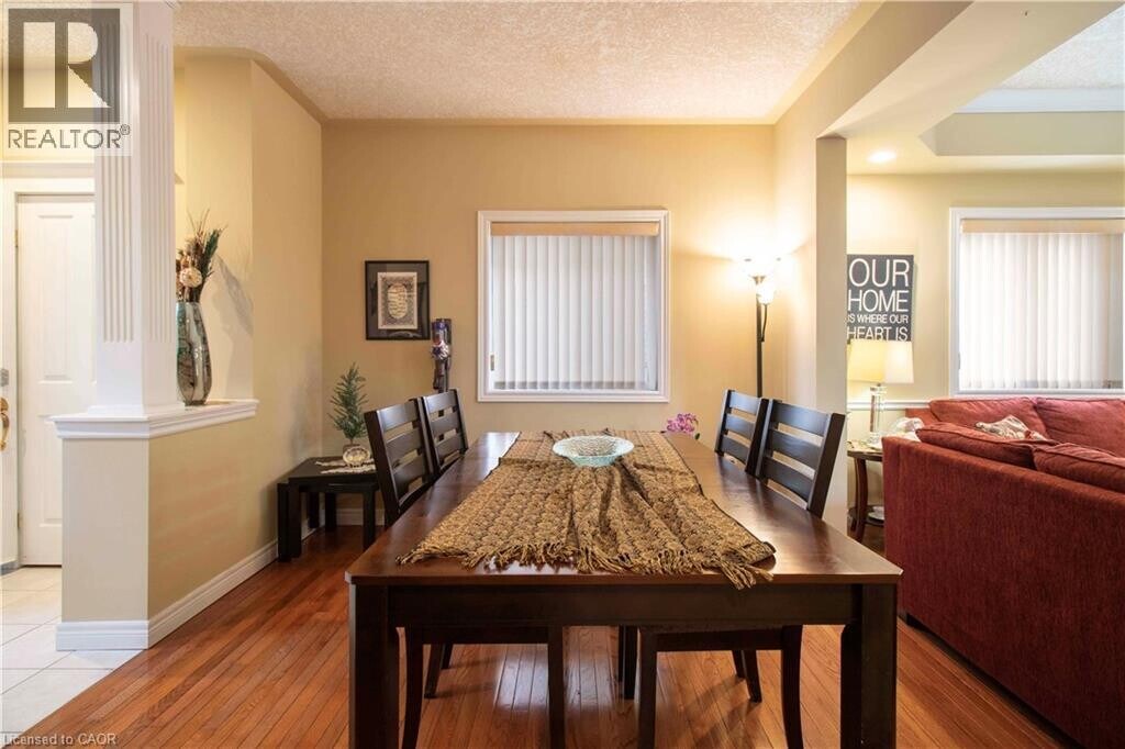 Spectacular Meadowlands of Ancaster! This beautiful 4-bedroom home showcases exceptional quality,upgrades,and a unique layout. Features include 9' ceilings on the main level,a dramatic 2-storey vaulted family room with gas fireplace,and hardwood flooring throughout (except the family room). The elegant dining room offers a coffered ceiling with crown moulding and recessed lighting. Additional highlights include a solid oak staircase,California knockdown ceilings,exposed aggregate front porch and driveway trim,and a patio deck perfect for entertaining. Conveniently located near shopping,schools,scenic areas,and quick access to Hwy 403 and the LINC,Tenants are responsible for all utilities and the rental cost of the water heater. A minimum one-year lease is required. The landlord prefers non-smokers and no pets. (id:52069) ID#: 1537418