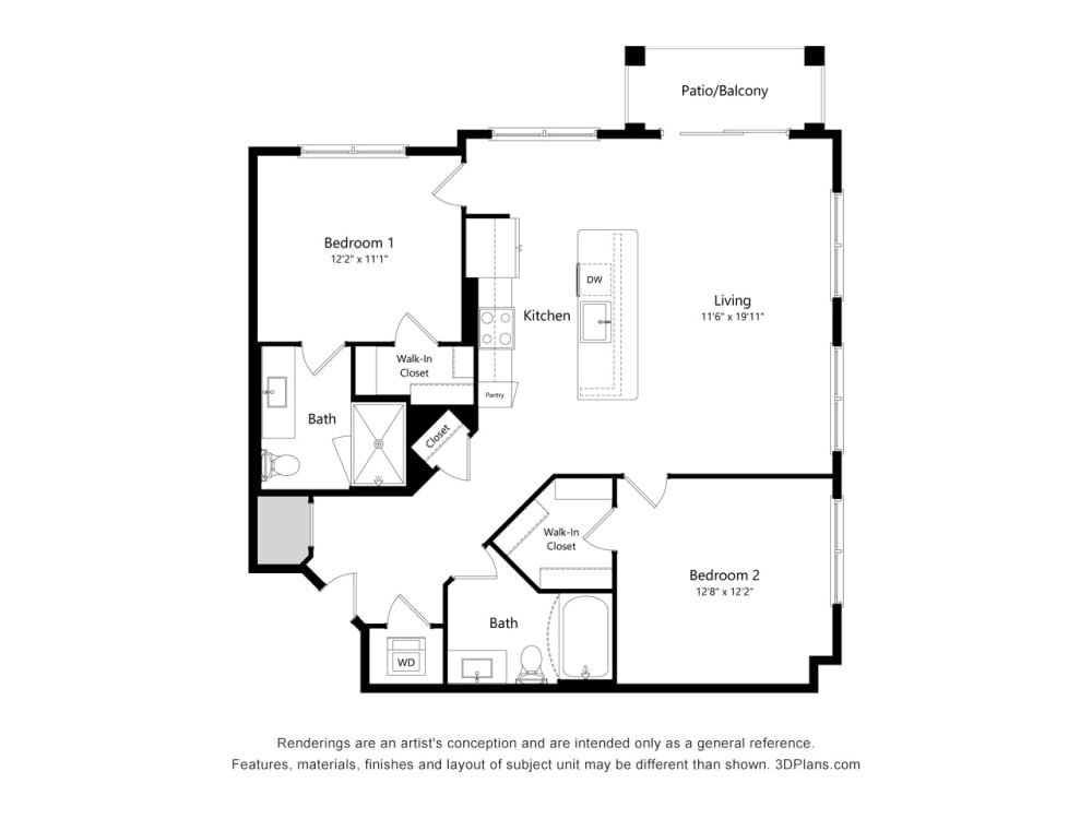 1 Bed, 1 Bath, 758 sq ftAvailable NowModel Gallery