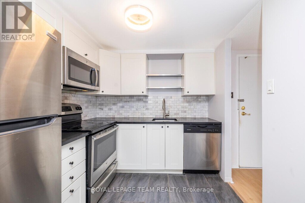 Welcome to the highly sought-after Lewis Court. Upon entering this spacious unit,you'll be greeted by new flooring throughout and an upgraded,open-concept kitchen featuring bright white cabinets,stainless steel appliances,and modern granite countertops. The main living area is perfect for entertaining,boasting a large,sun-filled,south-facing balcony. The unit includes two sizeable bedrooms and two full bathrooms. The master bedroom offers a large walk-in closet and an ensuite bathroom. Both bathrooms are updated,and the unit is freshly painted. Additional features include a substantial pantry with laundry and storage. Situated on a quiet street,this unit is just steps away from restaurants,shops,and the Canal. Young professionals will find commuting easy with nearby access to the 417,or they can leave their car at home in the included underground parking,taking advantage of the nearby bike lanes and paths. (id:52069) ID#: 1476289